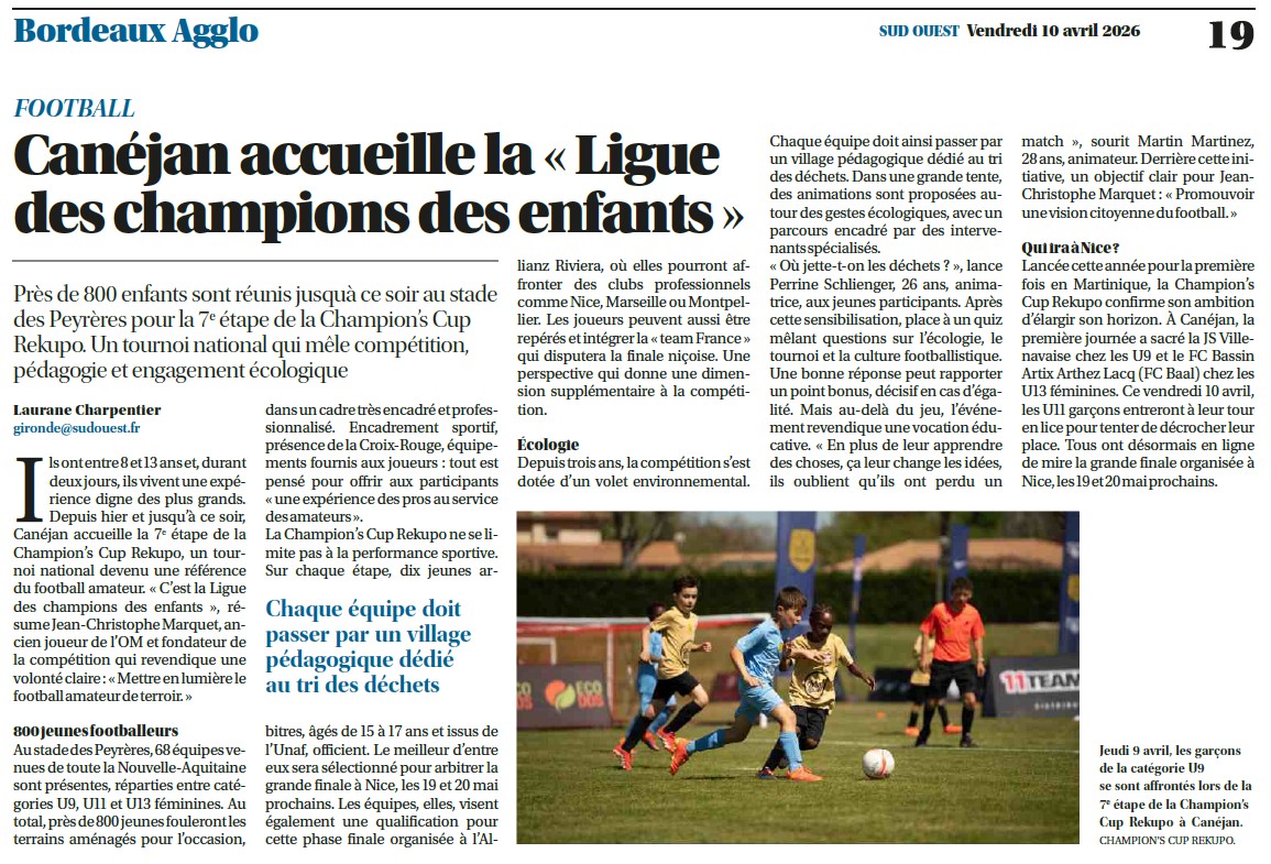 Jeudi 9 et vendredi 10 avril s’est déroulée la 7ème étape de la Champion’s Cup Rekupo au Stade des Peyrères ⚽️